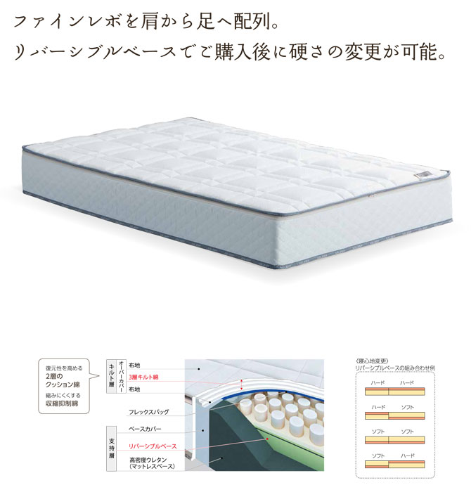 関連商品 シリ-ズ一覧 【ファインレボプライムマットレスJM ニットタイプ】 シングル セミダブル ダブル ワイドダブル クイーン シングルロング セミダブルロング ダブルロング ワイドダブルロング クイーンロング 【ファインレボプライムマットレスJM ニットタイプ 足元ぬくぬく機能付】 シングル セミダブル ダブル ワイドダブル クイーン シングルロング セミダブルロング ダブルロング ワイドダブルロング クイーンロング 詳細・スペック 商品説明 体格や寝方の変化に合わせて寝心地をチェンジ。