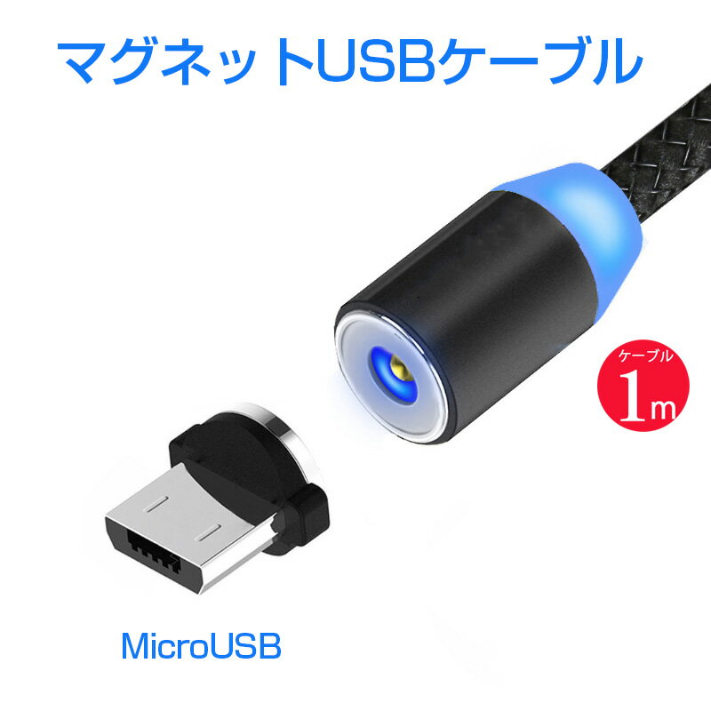 Android 充電 マグネットケーブル 1m 360° Micro USB 充電器 充電ケーブル LEDライト スマホ スマートフォン 360度回転
