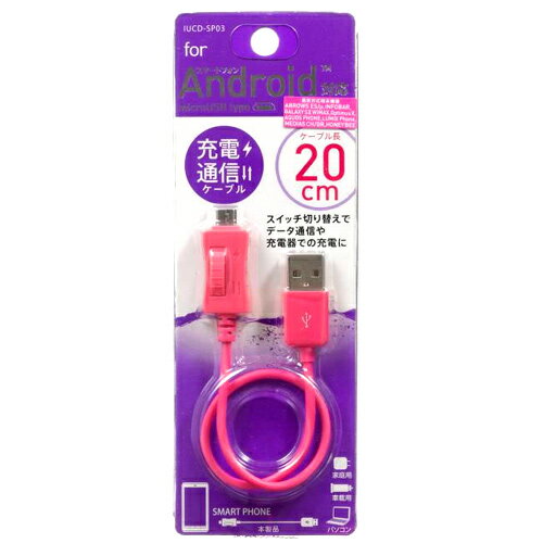 【クーポン配布中】【メール便送料無料】スマートフォン用 通信+充電ケーブル0.2m 20cm IUCD-SP03P 色:ピンク【RCP】[ スマホ ケーブル スマホ用 充電ケーブル 通信 充電 ショート 20cm ]